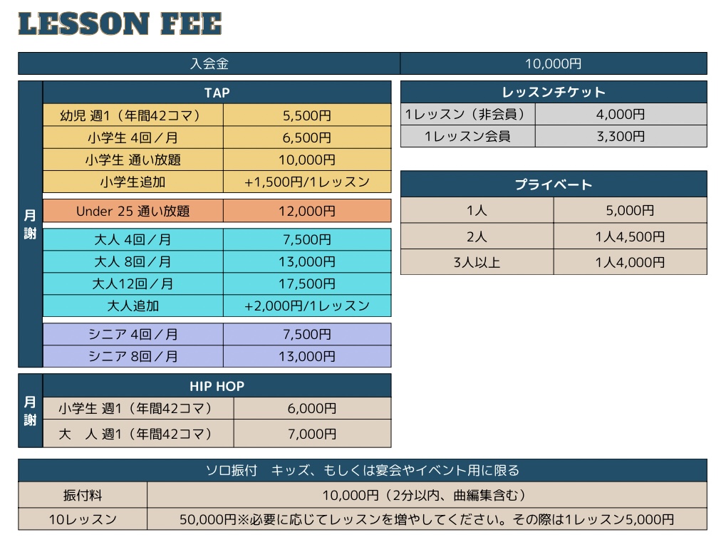 ※お月謝は、前月末クレジット引き落としです。